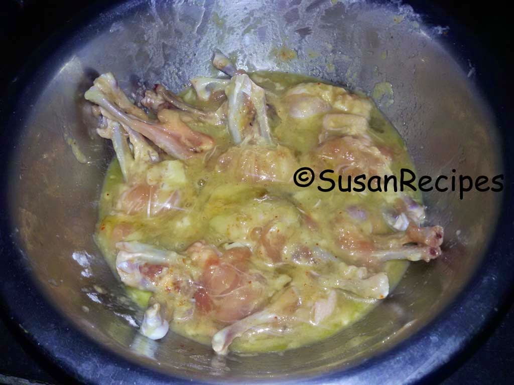 Now take the marinated lollipops little by little and fry them on medium flame till they turn slightly golden in colour.